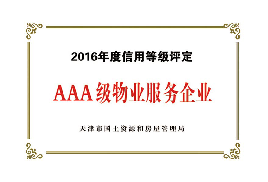 公司目前被授予:中國(guó)保安協(xié)會(huì)理事單位、物業(yè)管理綜合實(shí)力入圍企業(yè)、天津市物業(yè)協(xié)會(huì)理事單位、天津市保安協(xié)會(huì)常務(wù)理事單位、天津市保潔協(xié)會(huì)明星企業(yè)、天津市科技小巨人企業(yè)、天津市科技型企業(yè)、天津市物業(yè)管理企業(yè)優(yōu)秀項(xiàng)目經(jīng)理、企業(yè)信用評(píng)價(jià)體系A(chǔ)AA級(jí)企業(yè)、AAA級(jí)誠(chéng)信經(jīng)營(yíng)示范單位、AAA級(jí)重合同守信用單位、2017年被天津市工商業(yè)聯(lián)合會(huì)評(píng)為天津市民營(yíng)企業(yè)促進(jìn)就業(yè)百強(qiáng)企業(yè)、社會(huì)捐贈(zèng)百強(qiáng)企業(yè)、2018年銷售收入百強(qiáng)企業(yè),2020年被天津市退役軍人事務(wù)局評(píng)為天津市吸納退役軍人就業(yè)先進(jìn)單位。